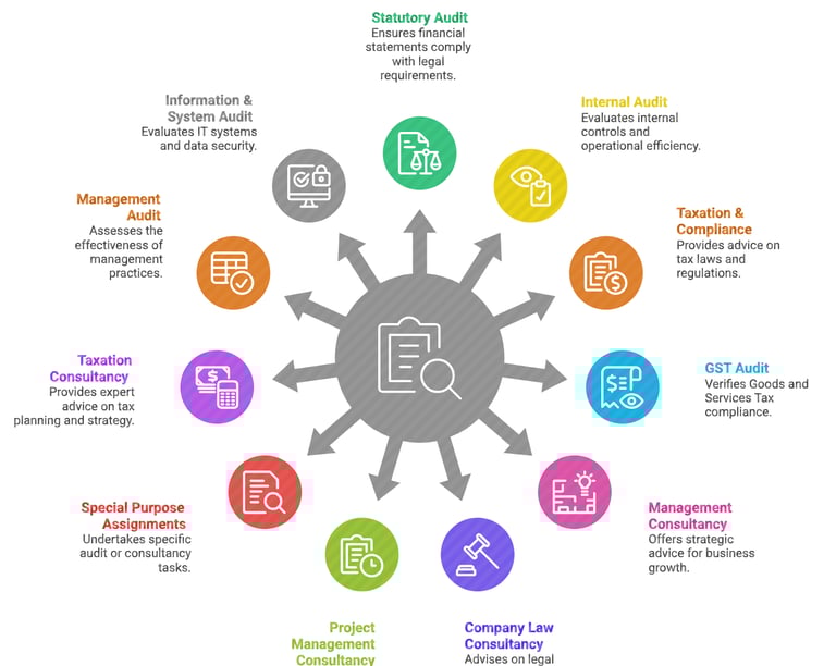 Management Consultancy, Taxation, Audit & Assurance, and Fund Raising Services.